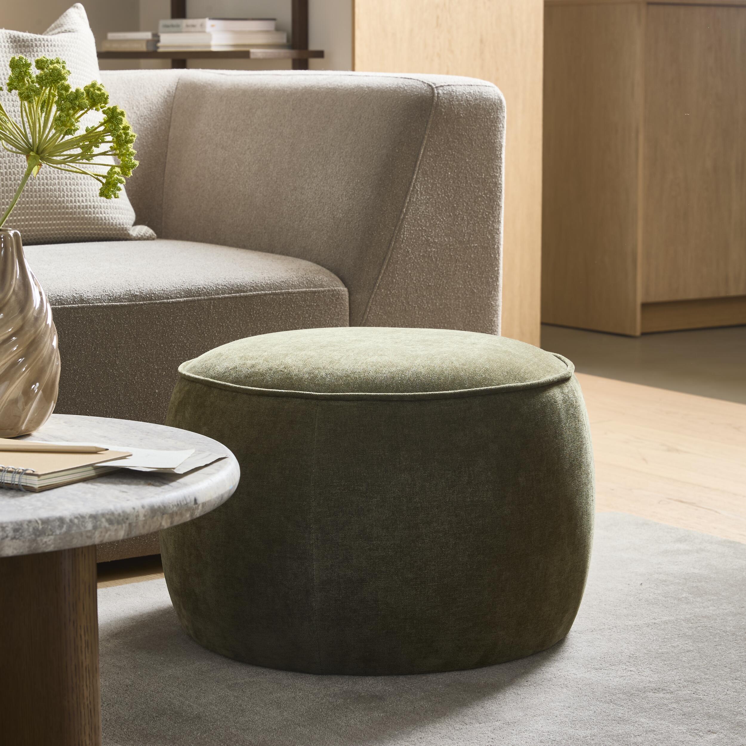 Imagine Divo ger dig möjlighet att lägga upp fötterna efter en lång dag. Med sin runda form och mjuka polyestertyg inbjuder den till lugn och närvaro i mitten av ditt hem. Den gröna färgen smälter naturligt in i vardagsrummet och skapar en varm atmosfär där du kan hitta din egen lilla oas.