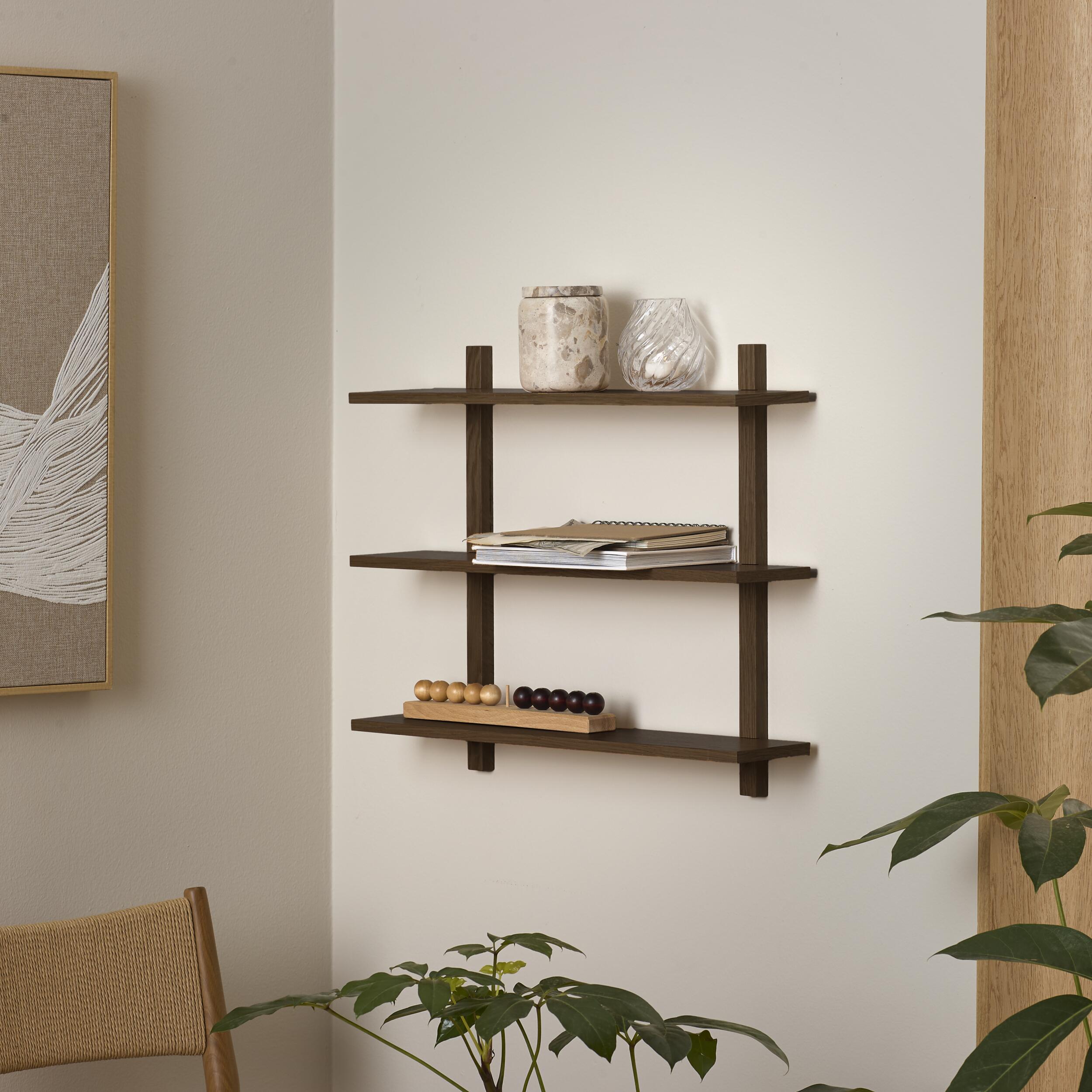Bokhyllan Bondi är som gjord för vardagen. Med tre hyllplan i mattlackerad, rökfärgad ek erbjuder den både funktionalitet och estetik. Den är perfekt för att visa upp dina favoritböcker och dekorativa föremål samtidigt som den ger en naturlig värme till rummet.