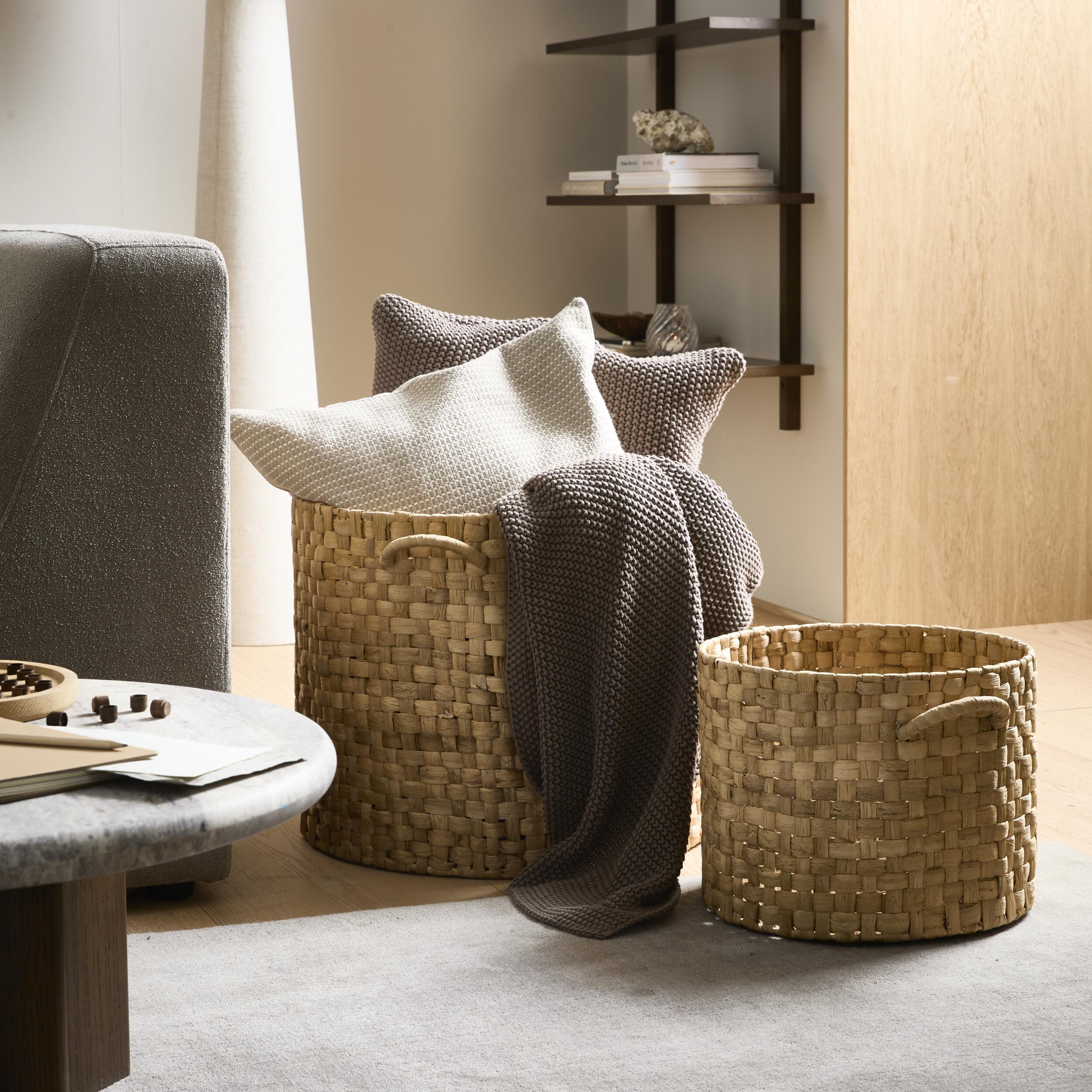 Helgar korgset är skapat för att ge värme och lugn i ditt hem. Med sitt naturliga utseende smälter de lätt in i alla inredningar, oavsett om det är i vardagsrummet eller sovrummet. De två korgarna finns i olika storlekar, så att du kan organisera dem som du vill - och samtidigt skapa en mysig atmosfär.