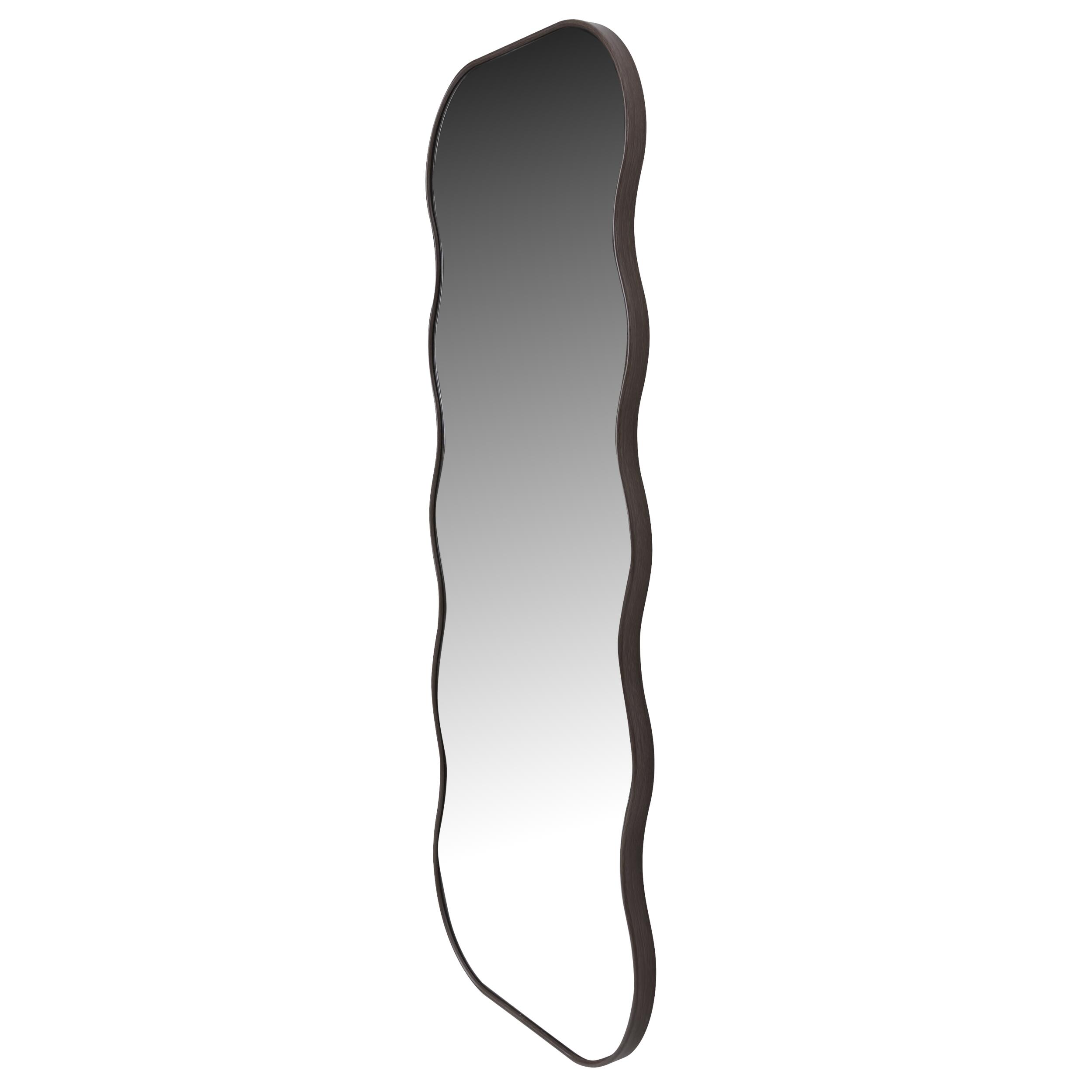Med sin unika form och mörka ram tillför Isdal-spegeln en varm atmosfär till rummet. Den böljande silhuetten skapar en fast plats i inredningen samtidigt som den betonar stämningen i rummet. Det är en detalj du lägger märke till var den än hänger.