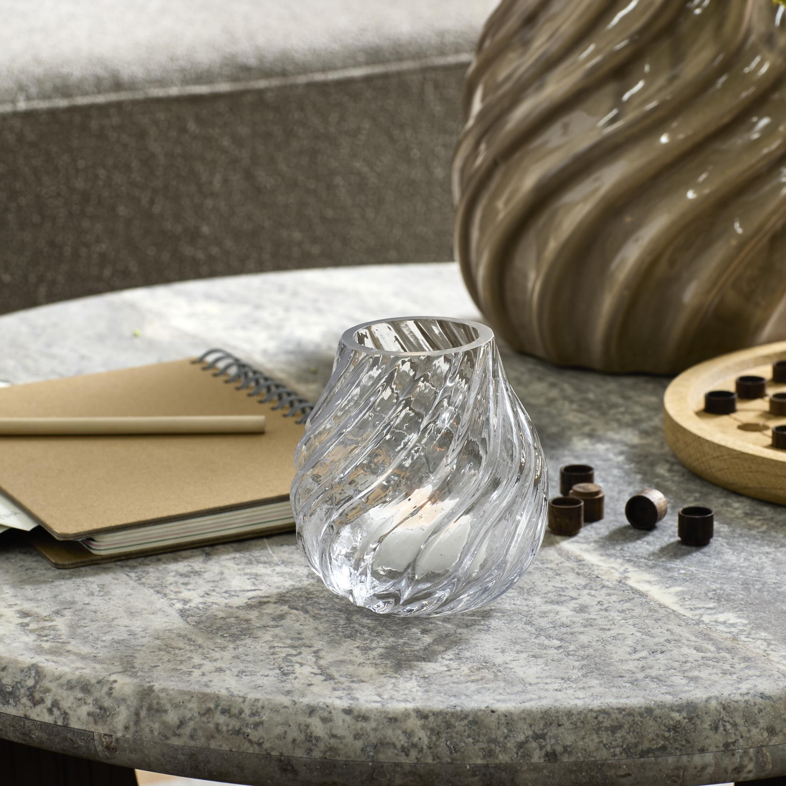 Myrheim värmeljusstake är skapad för att ge ett varmt sken i ditt hem. Med sin klara glasyta och sitt eleganta mönster smälter den naturligt in i alla inredningar. Oavsett om den står för sig själv eller i samspel med andra element tillför den en lugn ton till rummet.