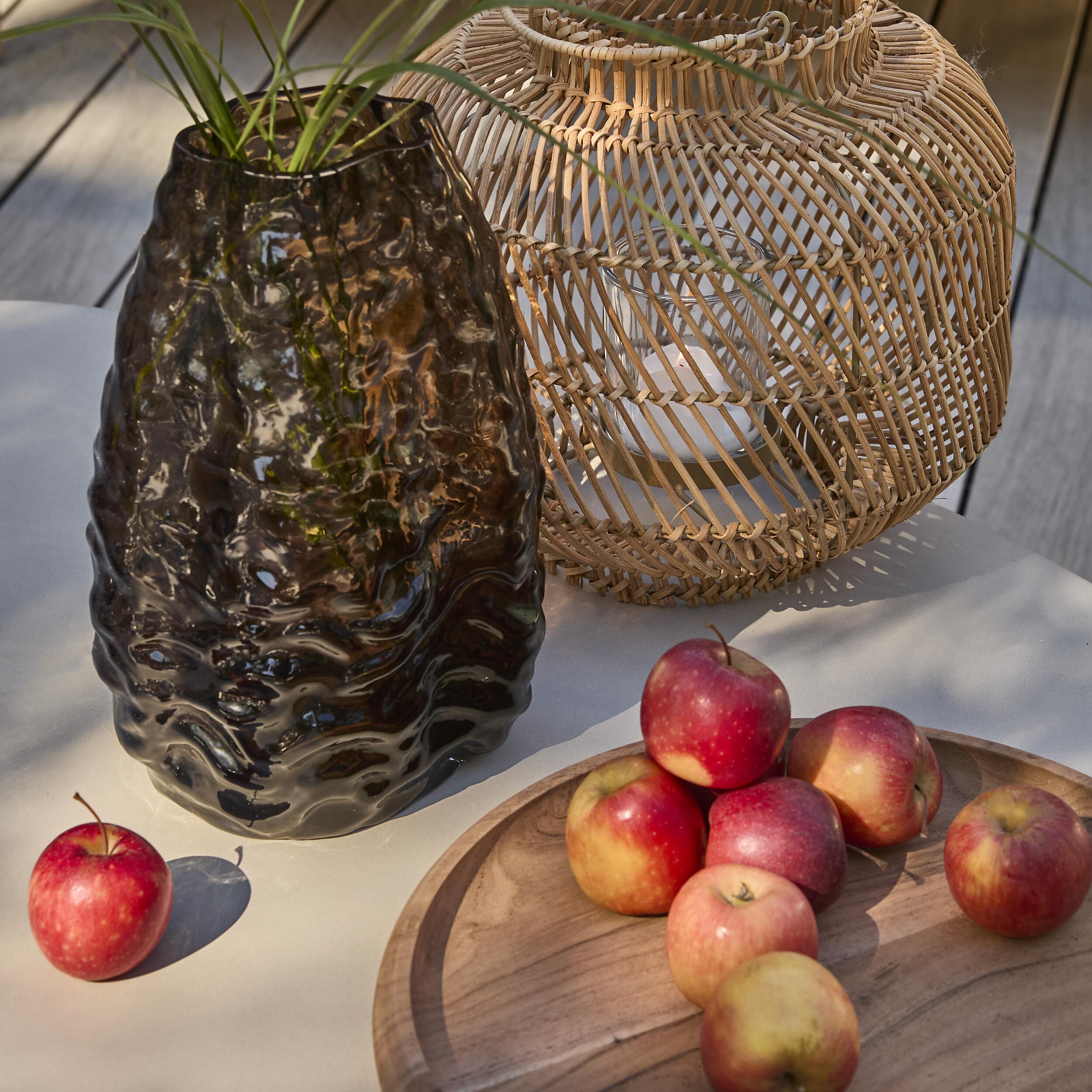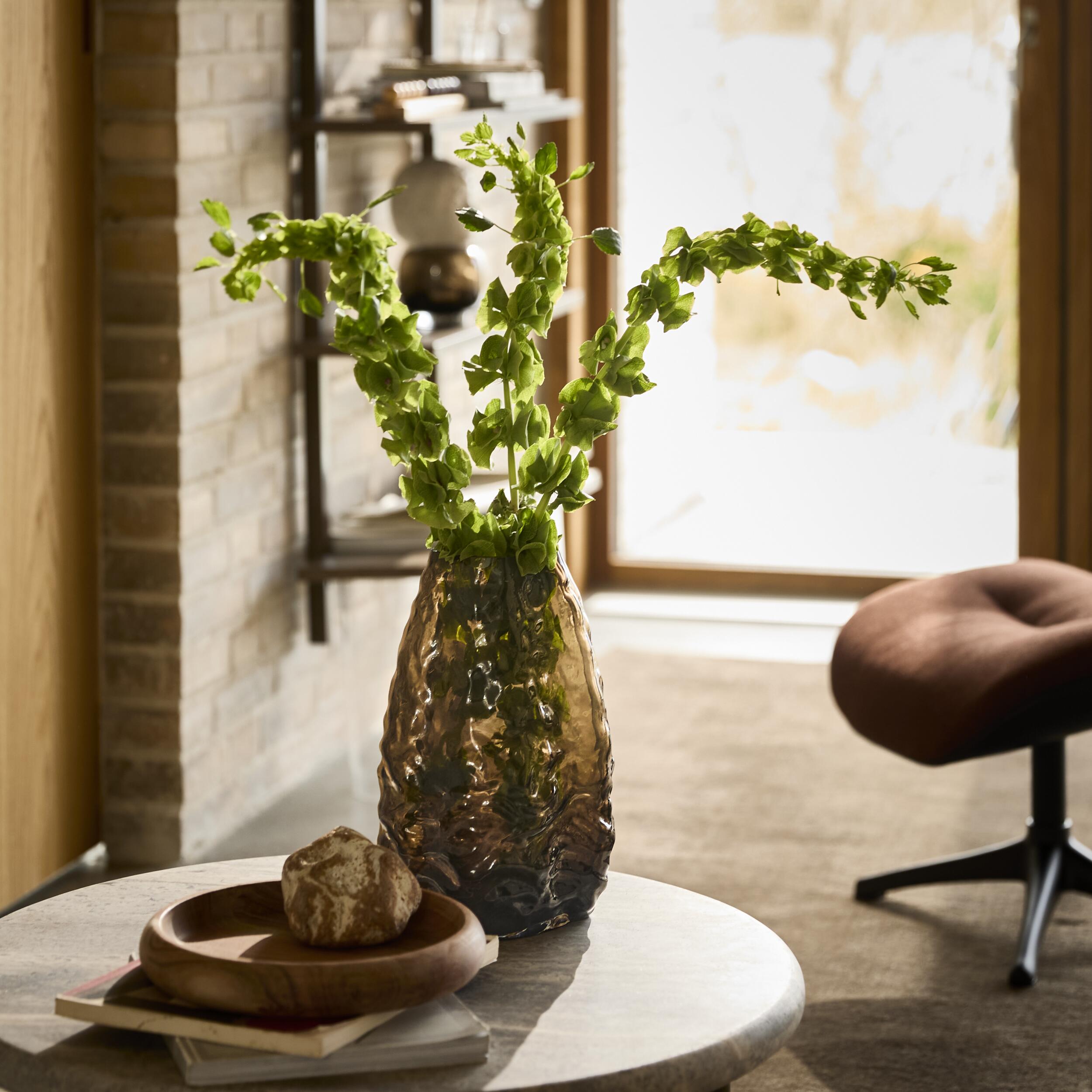 Fjorna-vasen skapar en varm och inbjudande atmosfär i ditt hem. Med sin brunaktiga färg och sitt unika mönster smälter den naturligt in i alla inredningar. Placera den på matbordet eller fönsterbrädan och låt den skapa en lugn ton i rummet.