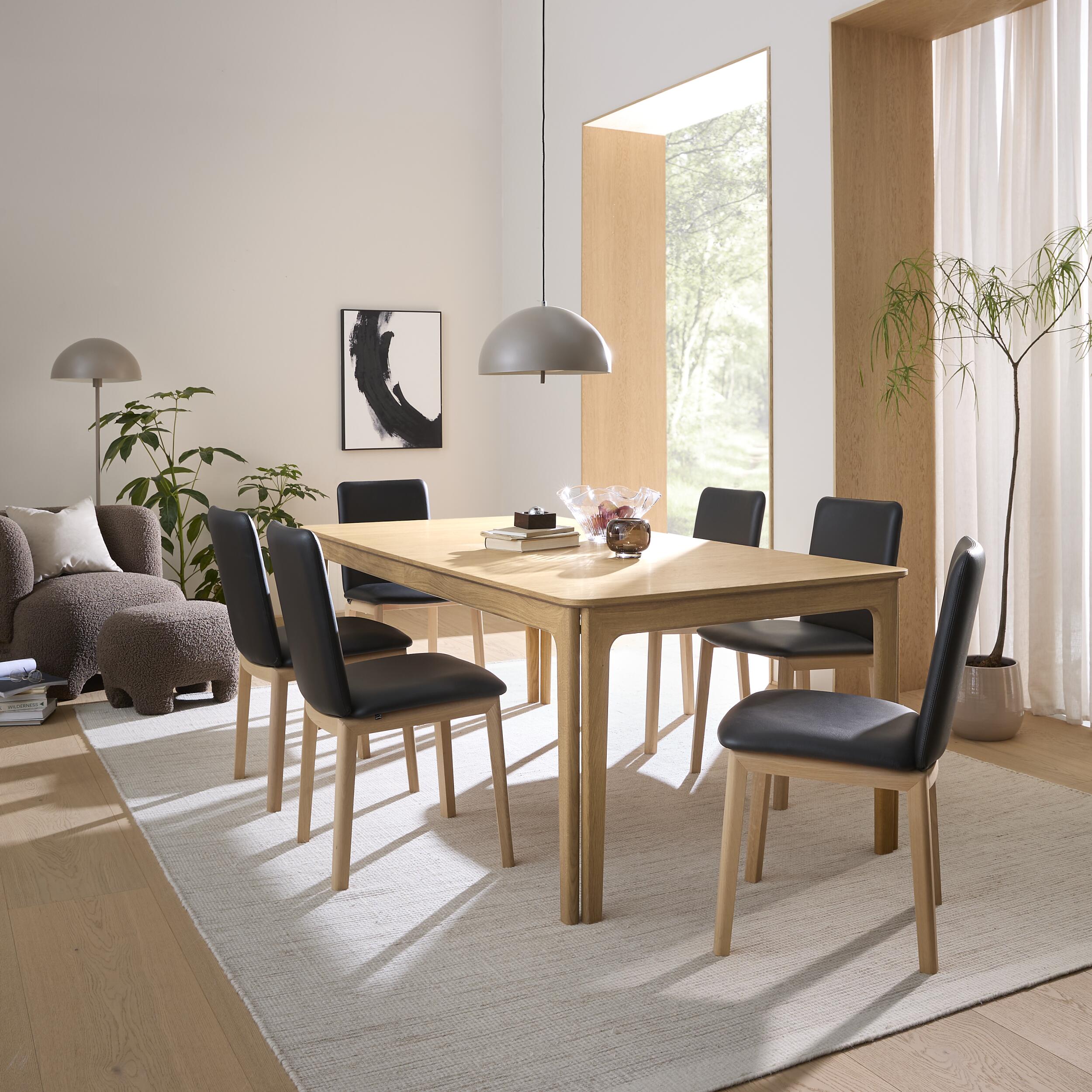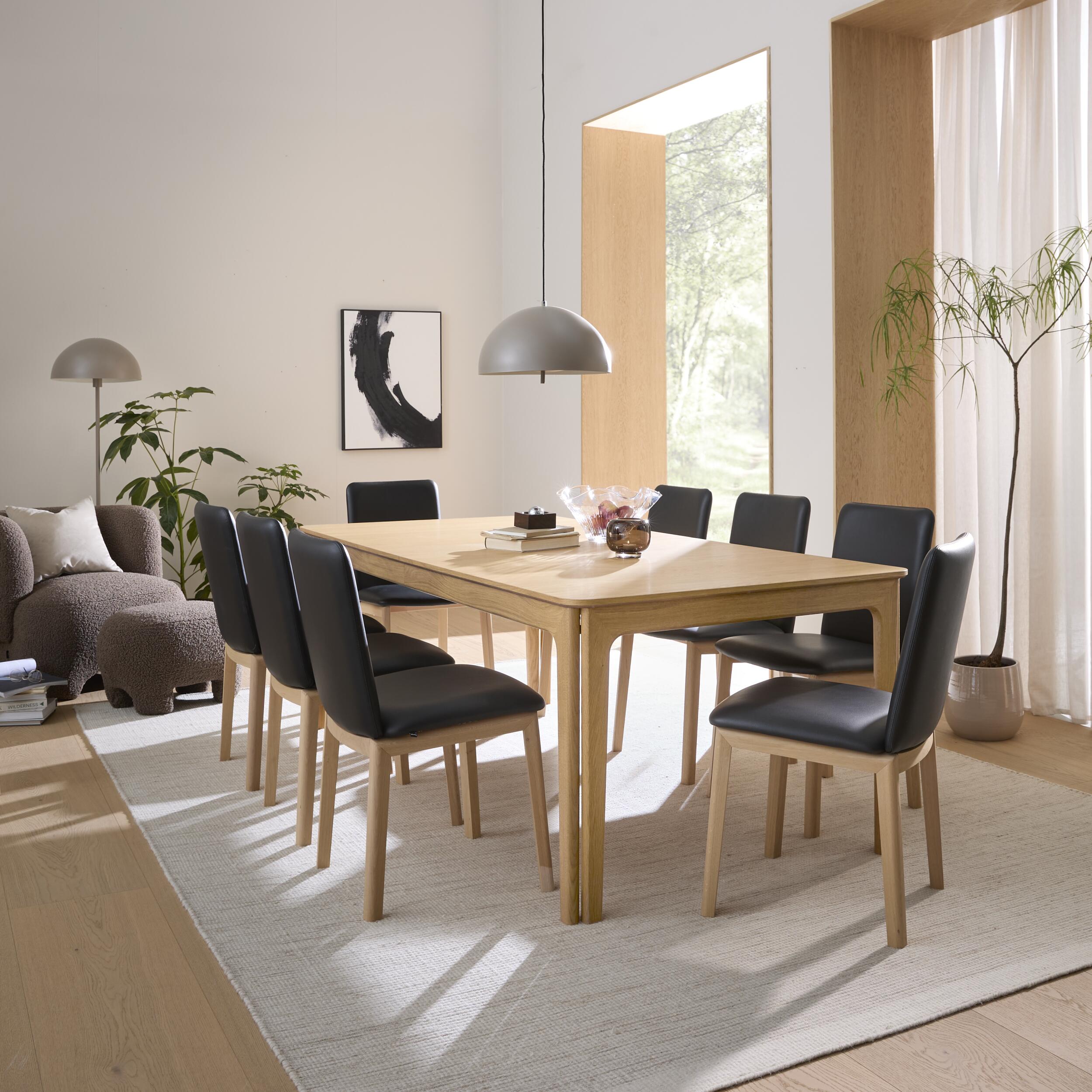 Skovby Michigan SM27 är som gjort för de stunder då livet levs runt bordet. Här kan du njuta av ditt morgonkaffe i lugn och ro medan dagens första ljus bryter in genom fönstret. Bordet är en inbjudan till närvaro, där både vardagsmåltider och festliga sammankomster kan rymmas.