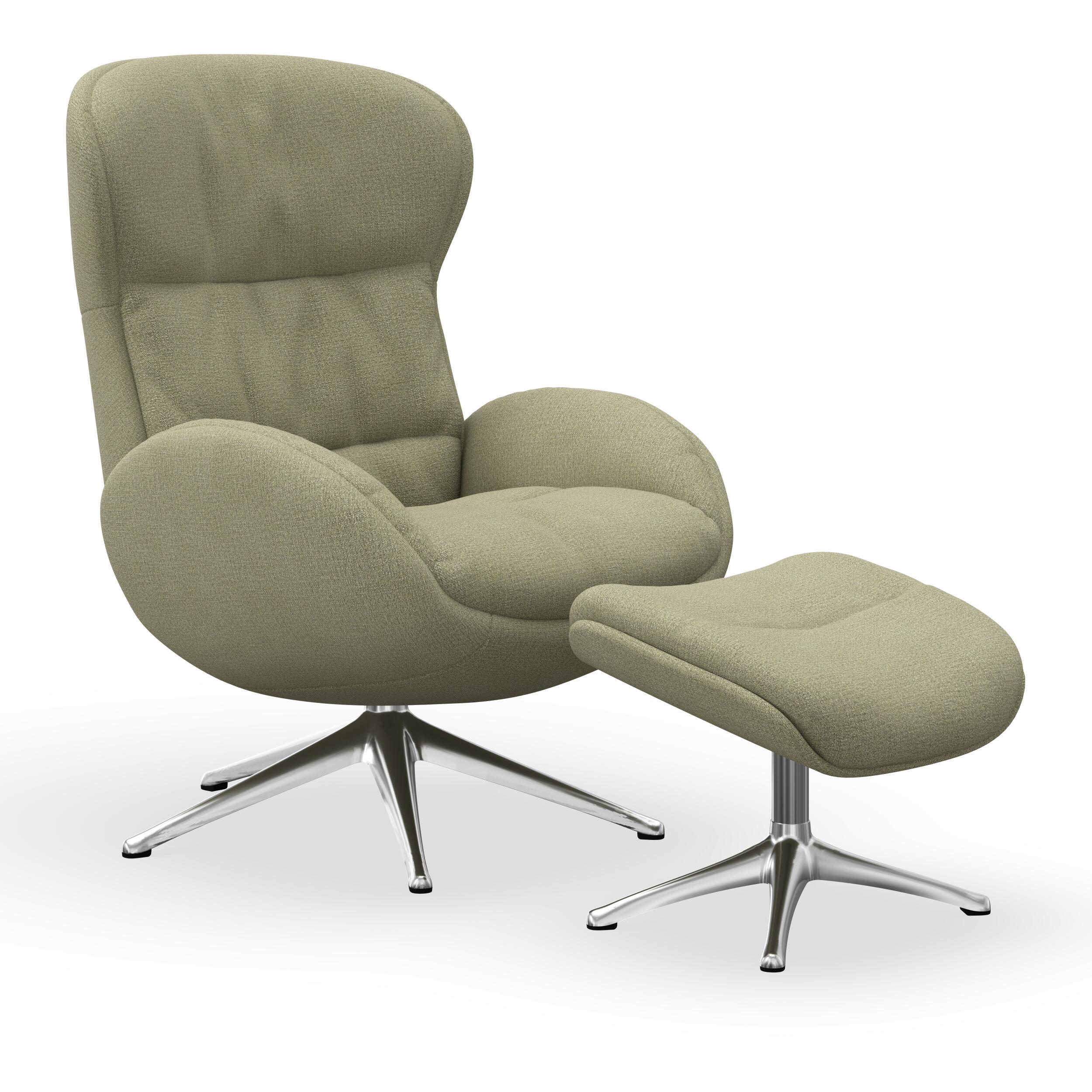 Lænestol og fodskammel, Verdon 358 Olive stof, sokkel i poleret aluminium
