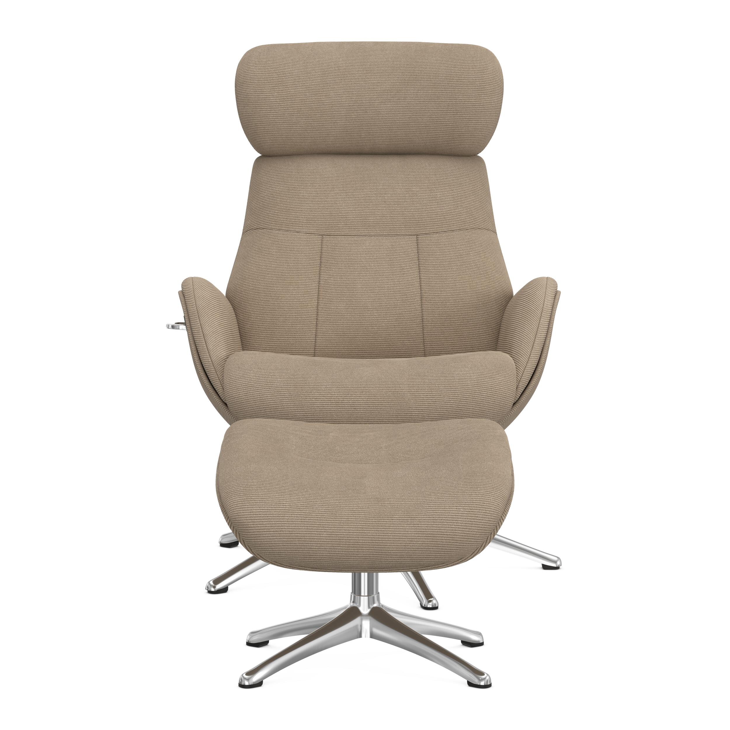 FlexLux Elegant förenar funktionalitet och estetik i en stilren fåtölj. Den höga ryggen och rundade armstöden ger optimalt stöd, medan fotpallen fulländar avkopplingen. Klädd i Wave-tyg i en varm sandfärgad nyans får fåtöljen ett tidlöst och modernt utseende. Den polerade aluminiumfoten ger en lätt och elegant finish.