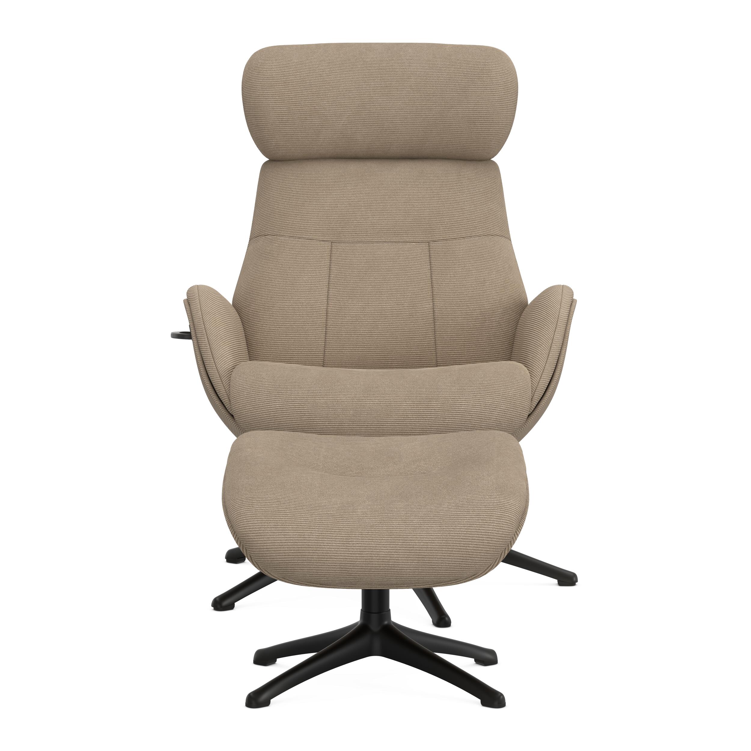 FlexLux Elegant är en fåtölj som kombinerar funktionalitet och design. Den höga ryggen och fotpallen säkerställer en ergonomiskt korrekt sittupplevelse, medan klädseln i Wave-tyg i en varm sandfärg skapar ett lätt och modernt uttryck. Den svartlackerade aluminiumfoten förstärker den stilrena designen.